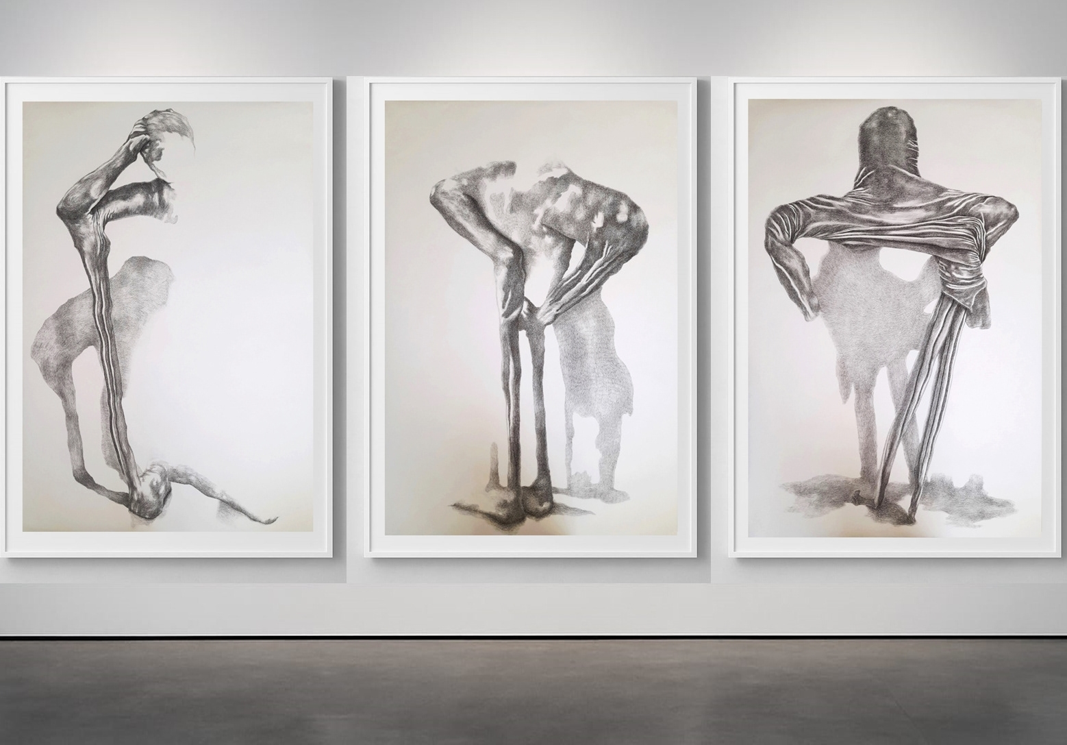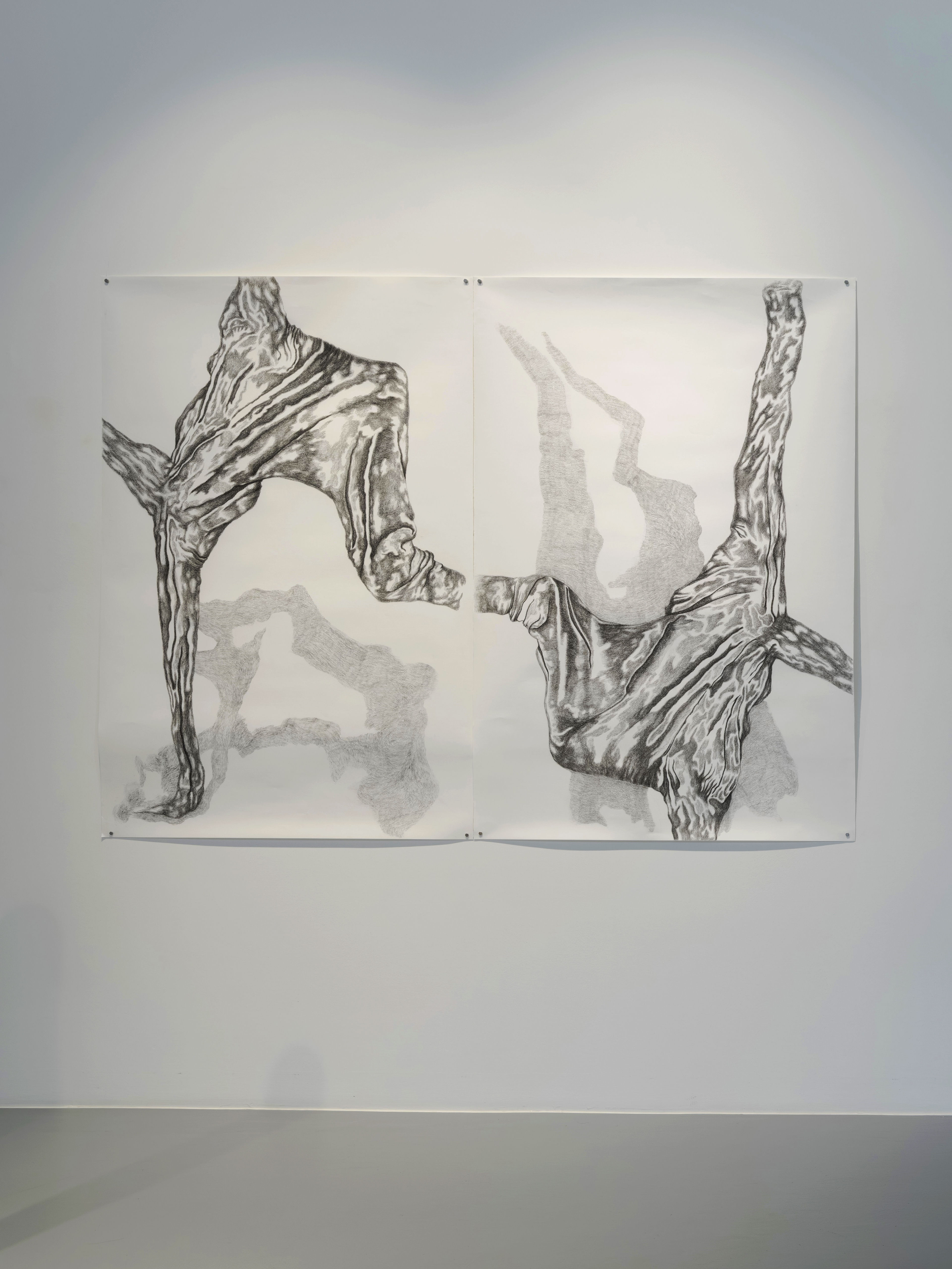 İsimsiz, 2025, kağıt üzerine füzen ve kömür kalem, her biri 100 x 150 cm (çerçevesiz)