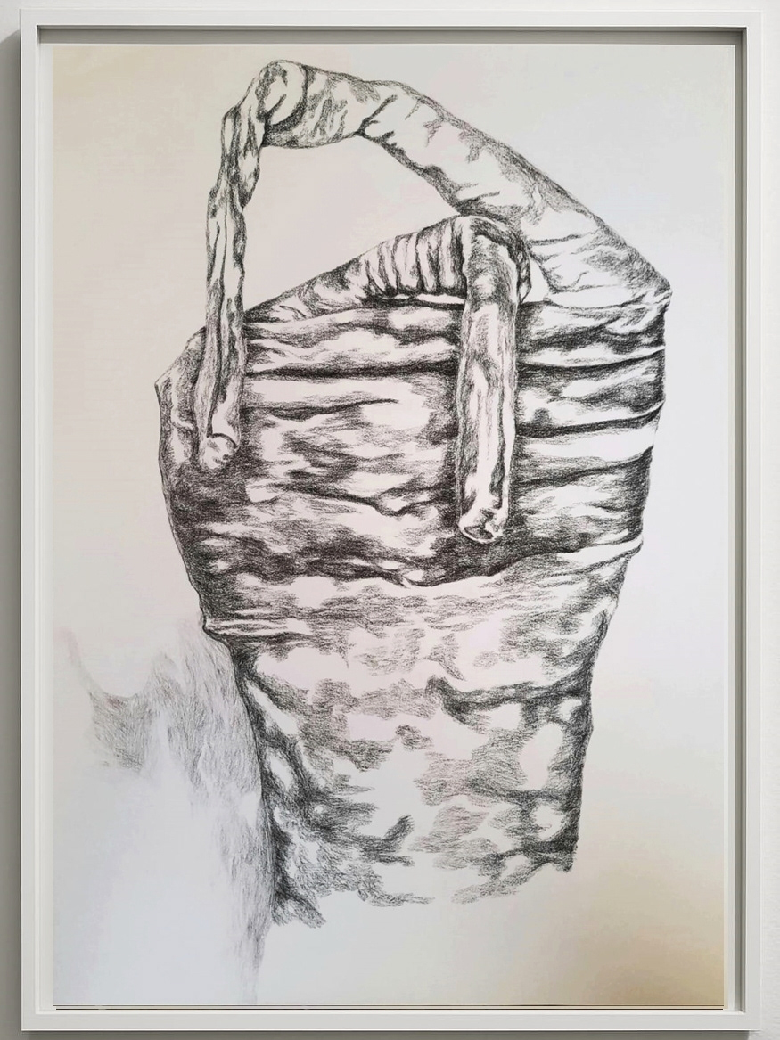 Ağırlığın Altında, 2024, kağıt üzerine füzen ve kömür kalem, 70 x 100 cm (çerçevesiz)